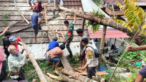 “Pohon yang tumbang telah dievakuasi oleh Bhabinkamtibmas bersama Babinsa dibantu oleh pihak pemerintah dan warga setempat,” terangnya.