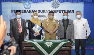 CAKRAWALAINFO.COM – BONE | Bupati Bone Dr. H. Andi Fahsar M Padjalangi, M.Si Menghadiri Penyerahan Surat Keputusan Perubahan Bentuk STKIP Muhammadiyah Bone Menjadi Universitas Muhammadiyah Bone Oleh Kepala Lembaga Layanan Pendidikan Tinggi Wilayah IX. Penyerahan SK Tersebut Di Saksikan Langsung Oleh Bupati Bone, Selasa 15 Desember 2020. Aula Auditorium STKIP Muhammadiah Bone