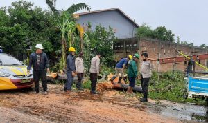 Kapolsek Galsel bersama jajarannya yang turun langsung mengecek dan menyingkirkan ranting pohon dengan alat sinso bersinergi dengan istansi terkait serta masyarakat secara gotong royong memotong ranting dan batang pohon tumbang agar tidak terlalu lama menghalangi jalan.