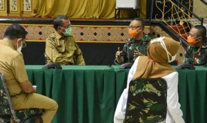 CAKRAWALAINFO.COM – BONE: Komandan Korem (Danrem) 141/TP Kolonel Inf. Suwarno mendampingi Gubernur Sulsel menyambangi Posko Satgas Penanganan dan Pencegahan Penyebaran Virus Corona atau Covid 19 di Balai Manunggal Jend M Yusuf .Jl Jend Sudirman Makassar, Senin (6 /04/2020).