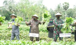 Di lokasi itu, juga dilaksanakan tanam ekaligus panen sayur keluarga.