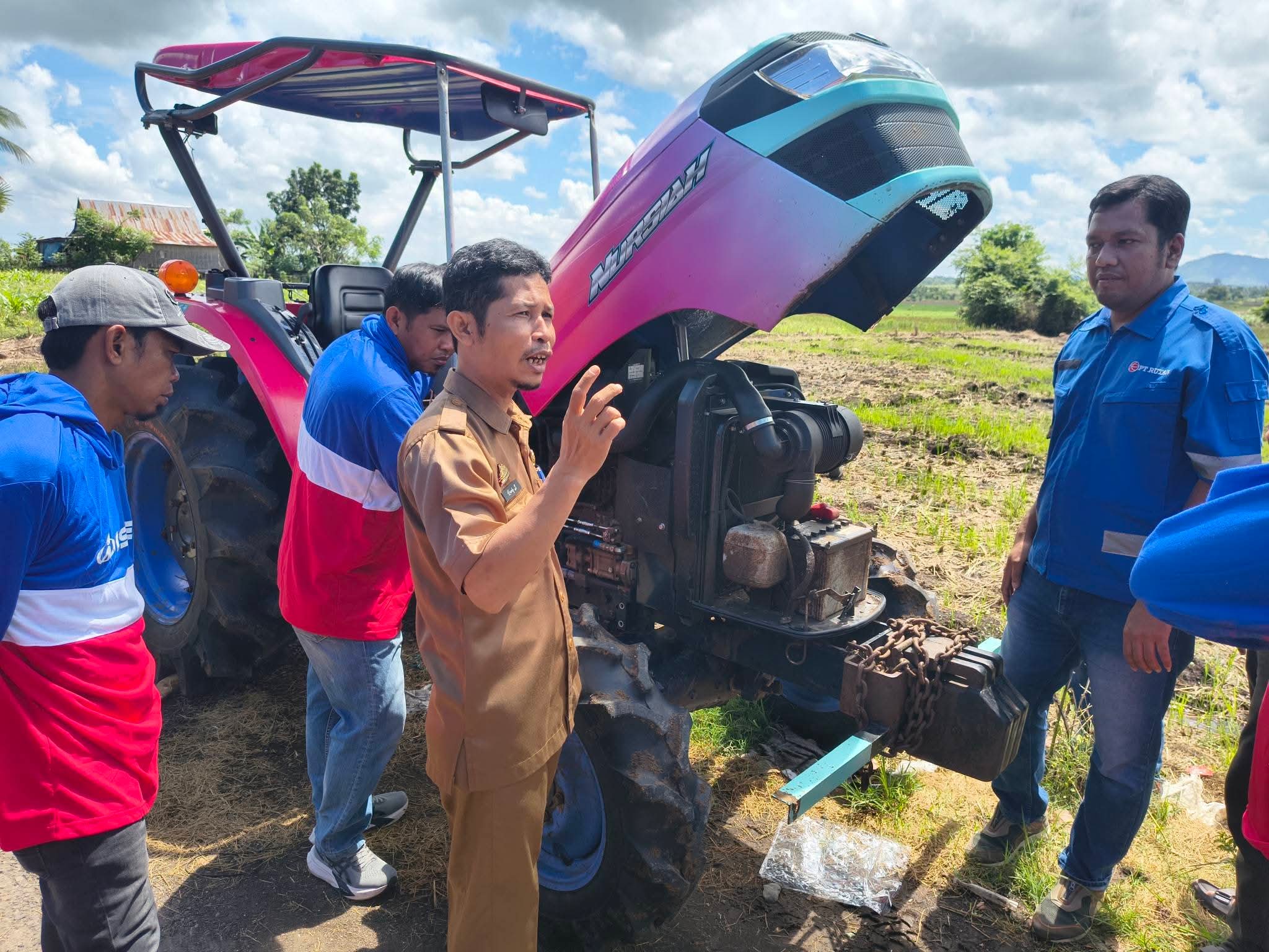 Kegiatan ini dipandu langsung oleh Syukur, instruktur profesional dari PT. RUTAN, yang memberikan pemaparan teknis sekaligus praktik langsung di lapangan terkait pengoperasian Traktor Roda Empat (TR4) ISEKI.