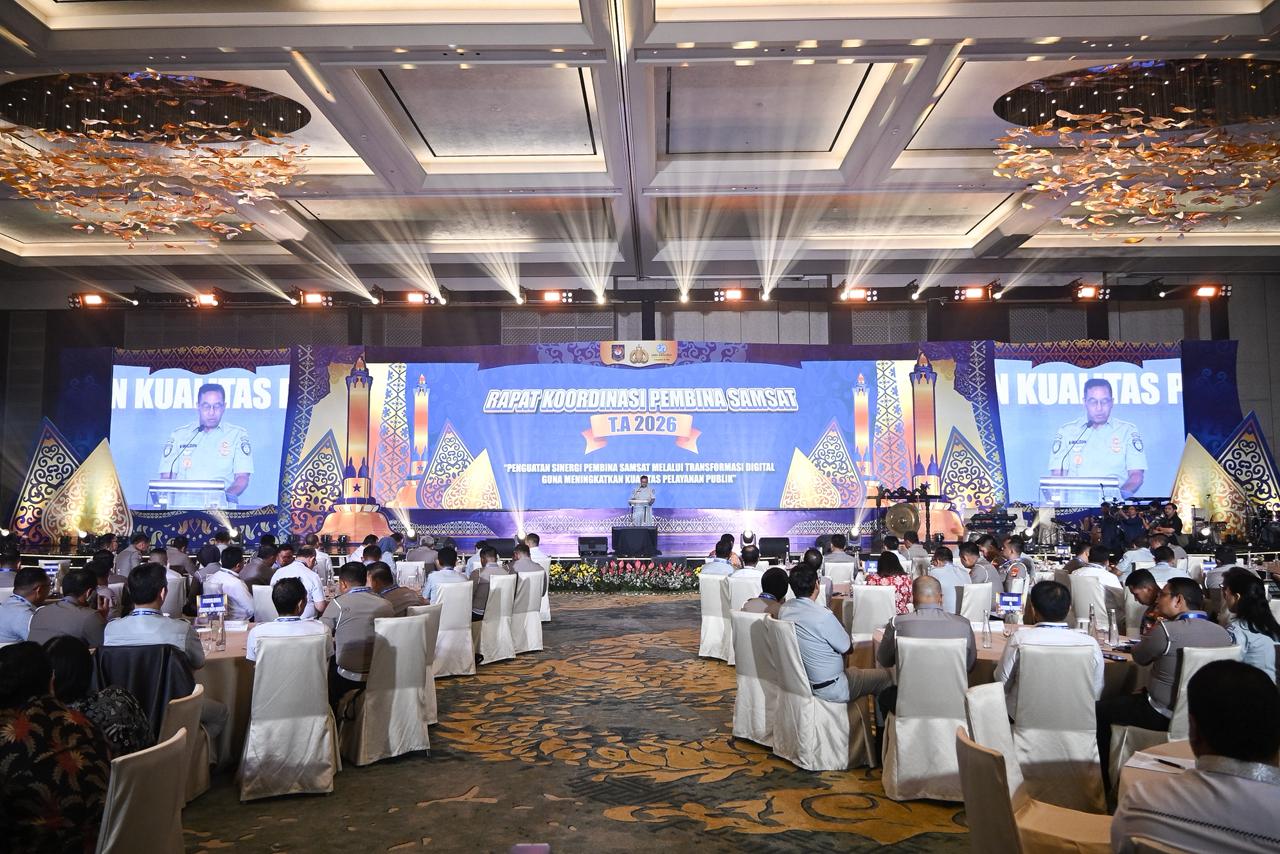 CAKRAWALAINFO.COM-SEMARANG – Upaya mempercepat transformasi digital layanan Samsat kian diperkuat melalui Rapat Koordinasi (Rakor) Pembina Samsat Tahun Anggaran 2026 di Semarang, Jawa Tengah, yang berlangsung pada hari ini (22/4). Dalam forum nasional ini, Jasa Raharja menegaskan komitmennya untuk menghadirkan pelayanan publik yang lebih mudah, cepat, dan terintegrasi dengan semangat melayani sepenuh