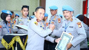 Penghargaan diserahkan langsung oleh Wakapolda Sulsel, Brigjen Pol. Nasri, S.I.K., M.H., kepada Kasi Propam Polres Toraja Utara, sebagai bentuk apresiasi atas keberhasilan dalam menjaga kedisiplinan internal dan meminimalisir pelanggaran anggota.