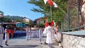 Upacara tersebut yang dilaksanakan berlangsung hikmat yang diikuti oleh kepala sekolah, para pendidik dan seluruh siswa/siswi SMA/SMP Katolik Makale