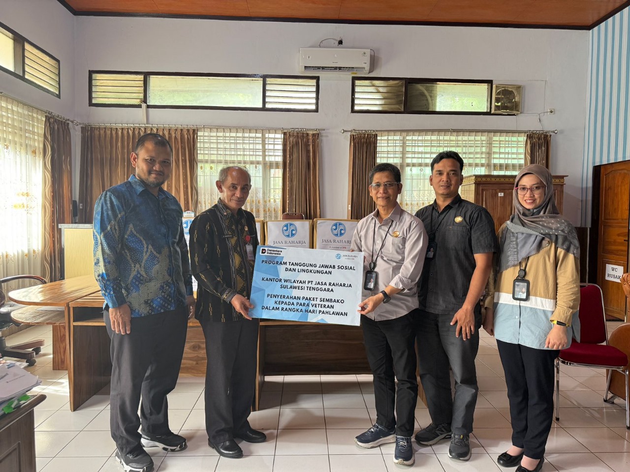 CAKRAWALAINFO.COM-KENDARI – Dalam rangka memperingati Hari Pahlawan, PT Jasa Raharja Kantor Wilayah Sulawesi Tenggara melaksanakan kegiatan sosial berupa penyerahan bantuan paket sembako kepada Dinas Sosial Kota Kendari. Bantuan tersebut selanjutnya akan disalurkan kepada para veteran pejuang kemerdekaan sebagai bentuk penghargaan dan rasa terima kasih atas jasa mereka terhadap bangsa dan negara.