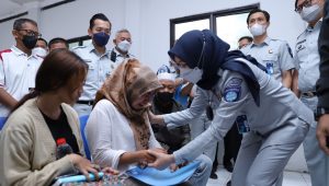 CAKRAWALAINFO.COM-BEKASI – Direktur Operasional Jasa Raharja Dewi Aryani Suzana, telah menyerahkan santunan kepada seluruh ahli waris korban kecelakaan maut truck kontainer yang terjadi di Jalan Sultan Agung, Kota Bekasi, pada Rabu, 31 Agustus 2022. Penyerahan santunan tersebut, diserahkan secara simbolis di Aula Kantor Kelurahan Kalibaru, Kecamatan Medan Satria, Bekasi, Kamis, (1/9/2022).