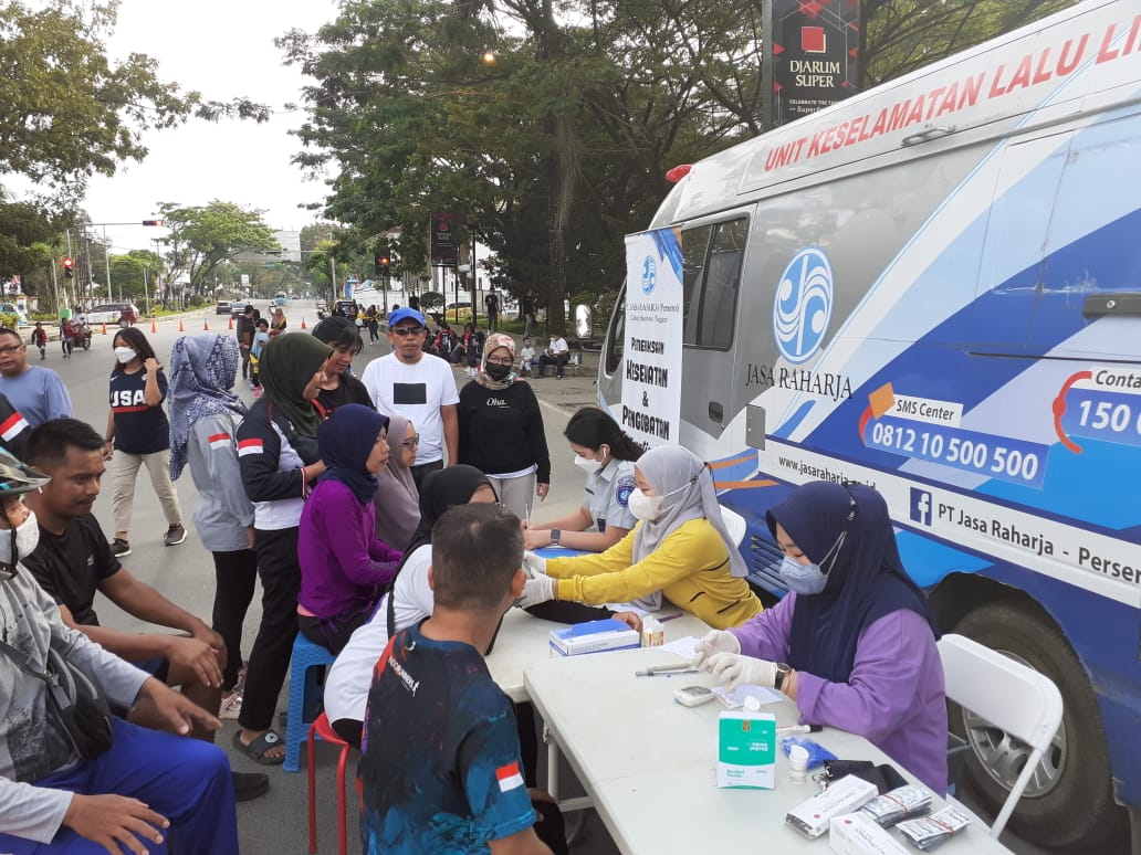 Kepala Jasa Raharja Sulawesi Tenggara, Lucy Andriani, S.Kom., PIA., CFrA., QRMP., menjelaskan bahwa kegiatan ini merupakan salah satu bentuk upaya Jasa Raharja didalam mencegah terjadinya kecelakaan sehingga pelayanan kesehatan gratis ini merupakan kegiatan rutin yang dilaksanakan oleh Jasa Raharja Sulawesi Tenggara di lokasi yang berbeda setiap minggunya tetapi akan dilaksanakan setiap hari Minggu di Tugu MTQ Kendari yang dilaksanakan bersamaan dengan kegiatan pelayanan SAMSAT Keliling dan Pelayanan SIM Keliling sehingga masyarakat yang akan melakukan pembayaran pajak kendaraan atau melakukan perpanjangan SIM bisa melakukan pemeriksaan kesehatan secara gratis.
