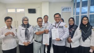Kepala PT Jasa Raharja Cabang Sulawesi Tenggara, Abdillah didampingi staf Mobile Service, Andi Ardian syahruddin, melakukan penandatanganan perjanjian kerjasama dengan rumah sakit baru yaitu Rumah Sakit Jantung Pembuluh Darah dan Otak Provinsi Sulawesi Tenggara, Rabu (31/7/2024).