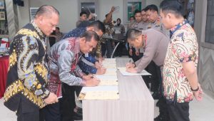 CAKRAWALAINFO.COM – SULSEL || Kapolda Sulsel Irjen Pol Drs. Setyo Boedi Moempoeni Harso, S.H., M.Hum. didampingi Wakapolda Sulsel Brigjen Pol. CH Patoppoi, S.St.M.K., S.H dan Pejabat Utama Polda Sulsel memimpin Penandatanganan Kesepakatan Bersama antara Satgas Tindak Pidana Perdagangan Orang (TPPO) Polda Sulsel dengan Instansi Terkait, Jumat (23/06/23).