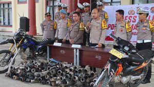 CAKRAWALAINFO.COM – MAMUJU TENGAH | Kapolres Mamuju Tengah, AKBP Amri Yudhy S, S.I.K., M.H, memimpin langsung press release di terkait penindakan knalpot tidak standar (knalpot brong). 30/01/2024