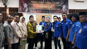 ” Saya telah melakukan pendaftaran pada hari senin kemarin di kantor DPC Partai Demokrat Kota Kendari ditemani dengan kerabat”, ucap alumni fakultas hukum UHO itu di kantor KPU Kota Kendari.