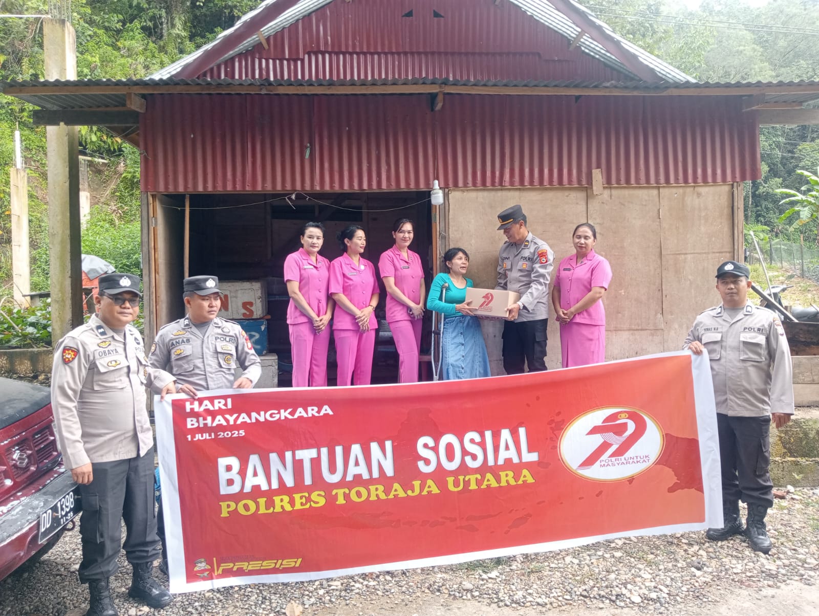 CAKRAWALAINFO.COM – TORAJA UTARA |Dalam rangka menyambut Hari Bhayangkara ke-79, Polres Toraja Utara bersama Bhayangkari Cabang Toraja Utara menunjukkan wujud nyata kepedulian dengan mengadakan bakti sosial dalam bentuk penyaluran bantuan sembako kepada warga kurang mampu di wilayah Kabupaten Toraja Utara.