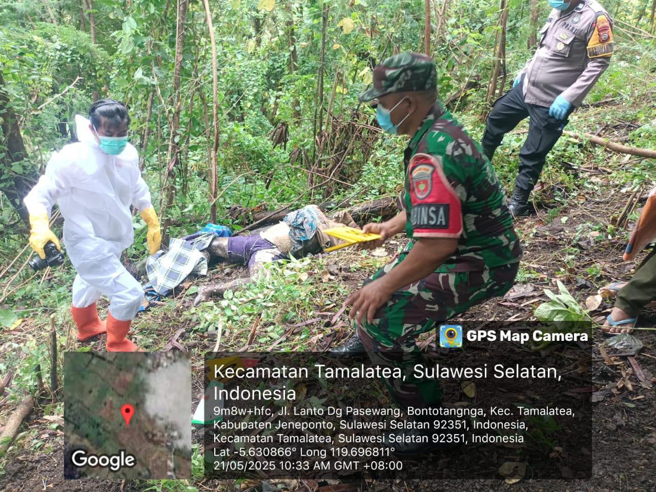 JENEPONTO – CAKRAWALAINFO.COM | Warga Dusun Gantinga, Desa Barayya, Kecamatan Bontoramba, Kabupaten Jeneponto digegerkan dengan penemuan sesosok mayat pria dalam kondisi membusuk, Rabu (21/05/25).