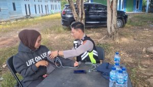 Program Polisi menyapa meliputi kegiatan Rampcheck kendaraan serta pelayanan kesehatan gratis kepada para pengendara yang melintasi jalan Trans Sulawesi Kabupaten Konawe utara