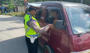 Selain membagikan masker kepada masyarakat pengguna jalan, personil Sat Lantas juga memberikan himbauan kepada masyarakat pengguna jalan agar selalu mematuhi rambu-rambu lalu lintas dan melengkapi surat surat kendaraan pada saat berkendara.