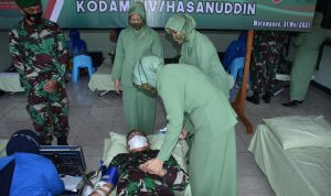 Oleh karena itu, pelaksanaan kegiatan Donor Darah dalam rangka memperingati Hari Ulang Tahun (HUT) ke-64 Kodam XIV/Hasanuddin kali ini, saya harapkan kiranya dapat menggugah hati masyarakat pada umumnya dan keluarga TNI pada khususnya, untuk senantiasa peka terhadap berbagai masalah sosial di masyarakat.”Tambahnya.