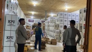 CAKRAWALAINFO.COM – MAMUJU TENGAH | Gudang logistik Pemilu 2024 di Mamuju Tengah menjadi fokus pengamanan dengan personel piket regu 1 di bawah Perwira Pengendali (Padal) IPDA Ajat Sudrajat S. S.Pd. Petugas keamanan dan aparat kepolisian untuk menerapkan langkah-langkah preventif guna memastikan integritas dan keamanan surat suara. Rabu 31/01/2024