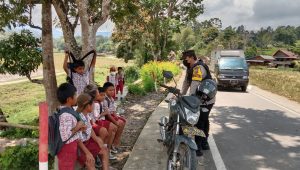 Disela melaksanakan patroli pada wilayah binaan di Lembang Rante Kec. Nanggala Kab. Toraja Utara, Brigpol Adiyantho menyempatkan diri menghampiri sekumpulan anak sekolah yang hendak kembali ke rumah masing-masing saat pulang sekolah.