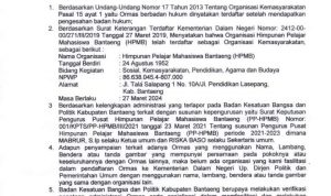 Mabrur, S.Ip Ketua Umum PP-HPMB menanggapi surat dari Kesbangpol Bantaeng tersebut, bahwa :