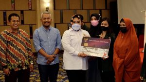 Ketgam : Tina Nur Alam menyerahkan Beasiswa Kepada mahasiswa stie 66 Kendari. Foto Istimewa