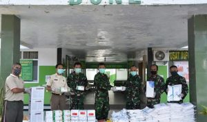 Dukungan alat kesehatan (alkes) diterima langsung oleh Dandenkesyah 14-07-01 Bone Letkol Ckm Dr.Haryadi AM.Sp.PD. bersama Para perwira denkesyah 14-07-01 Bone.