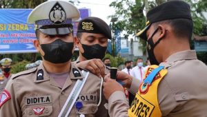 Apel gelar pasukan ditandai dengan penyematan pita tanda Operasi Zebra 2022 berwarna biru secara simbolis kepada perwakilan TNI, Polri, Dinas Perhubungan dan Satuan Polisi Pamong Praja oleh Kapolres Toraja Utara AKBP Eko Suroso, S.I.K selaku pimpinan apel.
